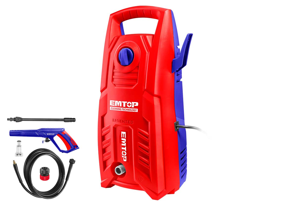 La hidrolimpiadora Emtop EHPW1401 es un equipo que presuriza el agua y permite que la misma salga a través de una pistola a presión de hasta de 130 bar, esto reduce los tiempos de trabajo y ahorro en el consumo de agua aligerando la labor de limpiar en cualquier superficie.